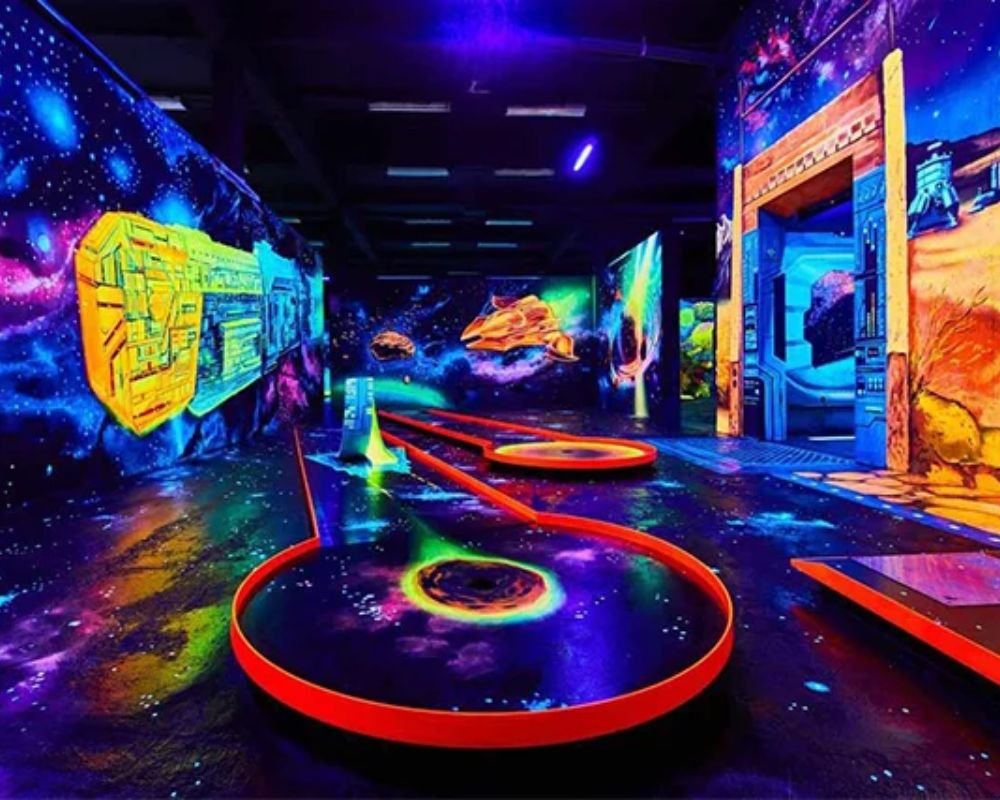 Dive into a unique and immersive entertainment experience at 3D Blacklight Minigolf Dubai, where mini-golf meets glowing neon and stunning 3D art. Located in JBR’s vibrant entertainment district, this indoor attraction offers 18 holes of fun, played under UV blacklight and surrounded by fantastical glow-in-the-dark murals. A great choice for families, couples, and friends looking for something different — it’s not just mini-golf, it’s an unforgettable visual journey!