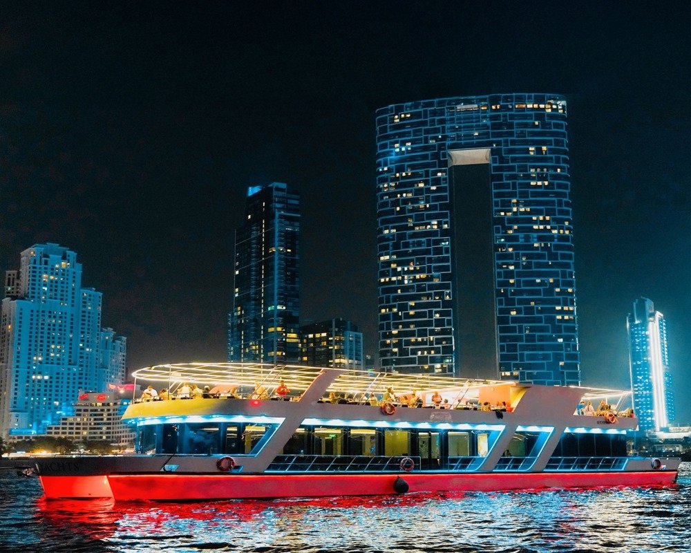 Experience a luxurious evening cruise along Dubai Marina’s dazzling skyline