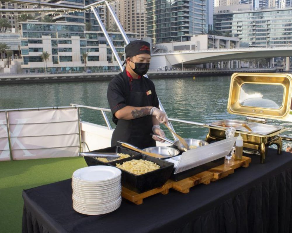 Step aboard a stunning luxury yacht and experience Dubai Marina like never before. Sail through the glittering waterways surrounded by the city’s breathtaking skyline as you indulge in a gourmet dinner freshly prepared by expert chefs. Whether you’re celebrating a special occasion or simply looking to unwind in style, this unforgettable evening combines fine dining, warm hospitality, and panoramic views for the perfect Dubai night out.