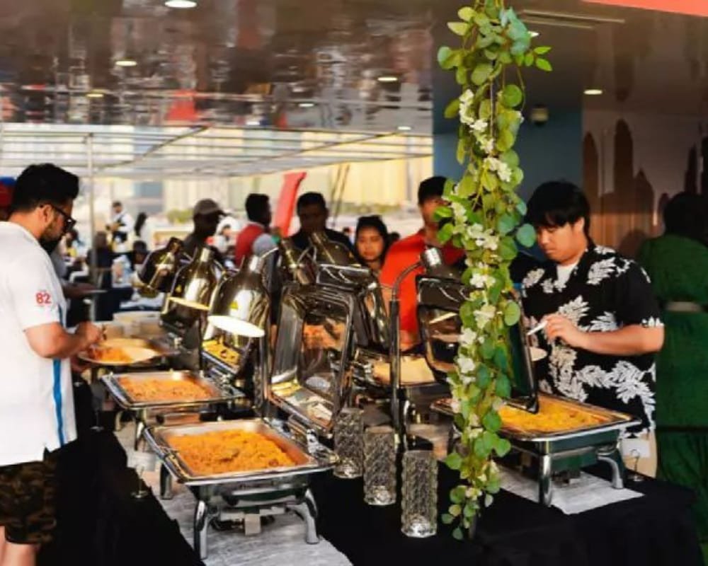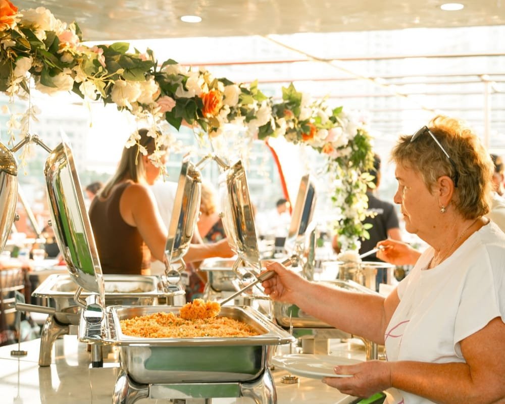 Enjoy a freshly prepared international buffet dinner with live cooking stations