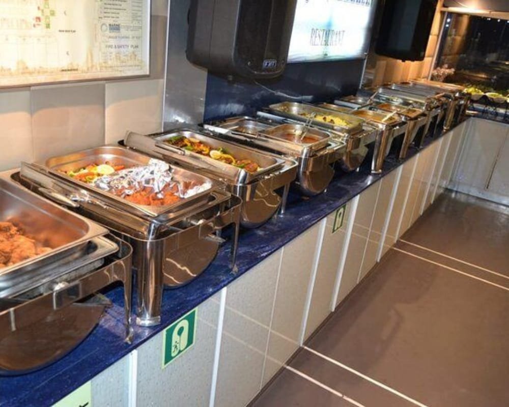 Indulge in a multi-course buffet dinner with both vegetarian and non-vegetarian options.
