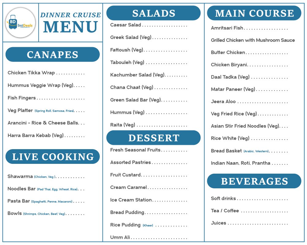 • Enjoy a delicious buffet dinner while sailing through the heart of Dubai Marina