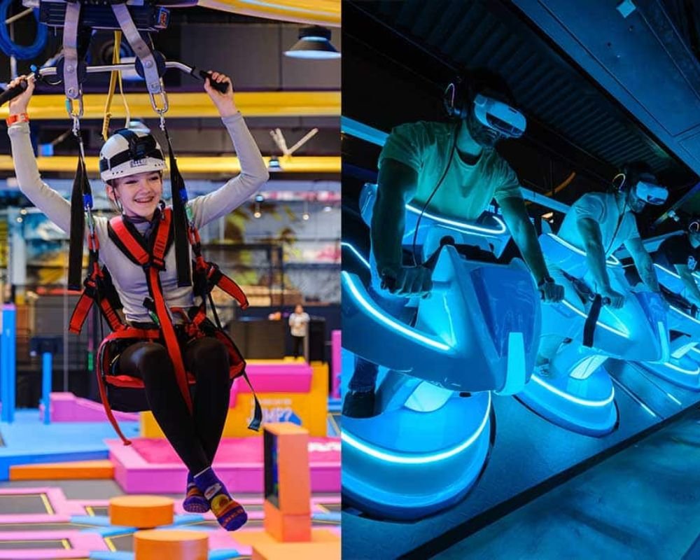 • Themed indoor zones with climbing walls, soft play, VR, and arcade games