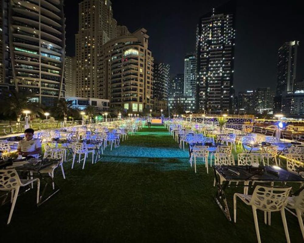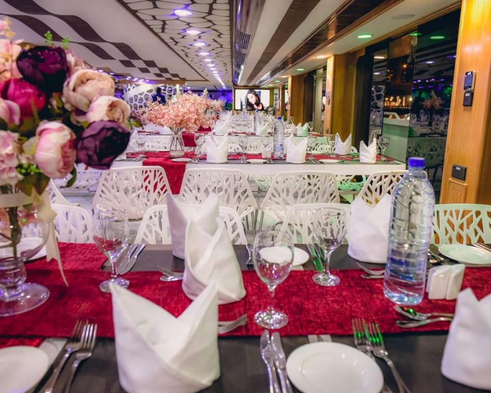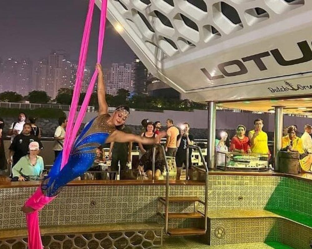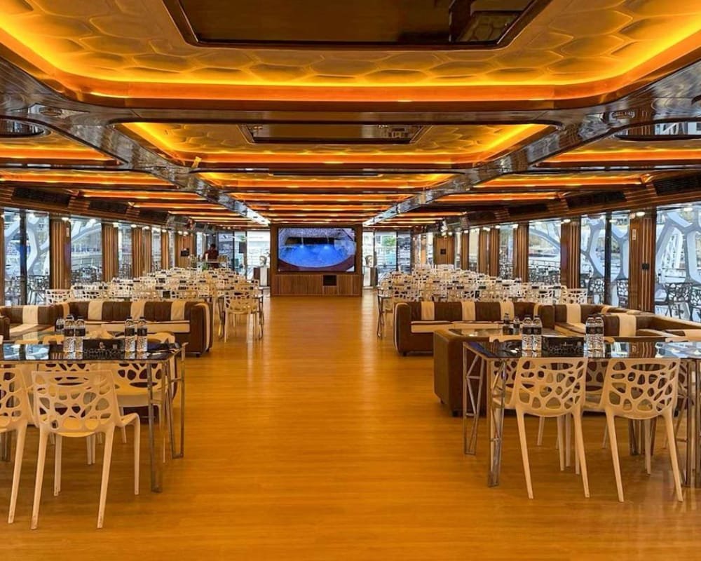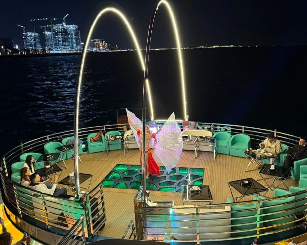 Indulge in an extraordinary evening aboard the Lotus Royale Megayacht, one of Dubai’s largest and most luxurious dinner cruises. This 220-foot megayacht offers a 5-star floating experience as you glide through the shimmering waters of Dubai Marina, JBR, and Bluewaters Island. With world-class dining, live entertainment, and panoramic skyline views, the Lotus Royale is the perfect setting for romantic nights, VIP gatherings, and unforgettable celebrations.