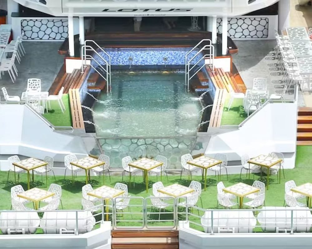 Access to all public areas: sun deck, dining deck, and lounge areas