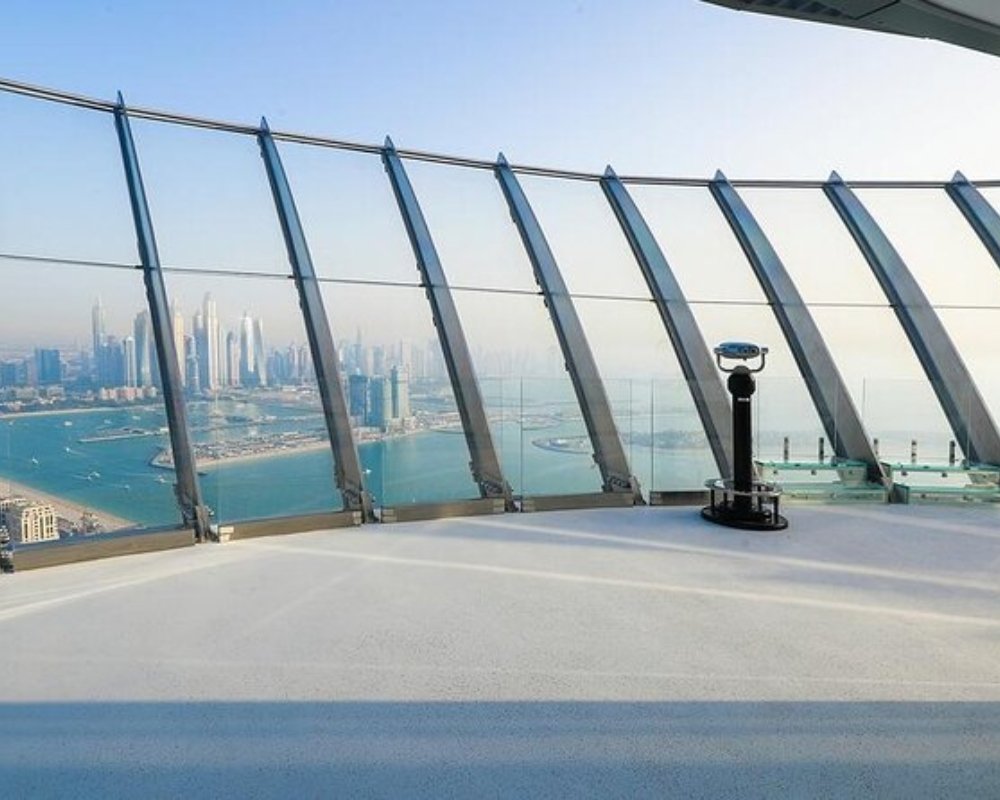 • Enjoy breathtaking 360° views of Palm Jumeirah, Dubai Marina, and Dubai’s iconic skyline from 240 meters above ground